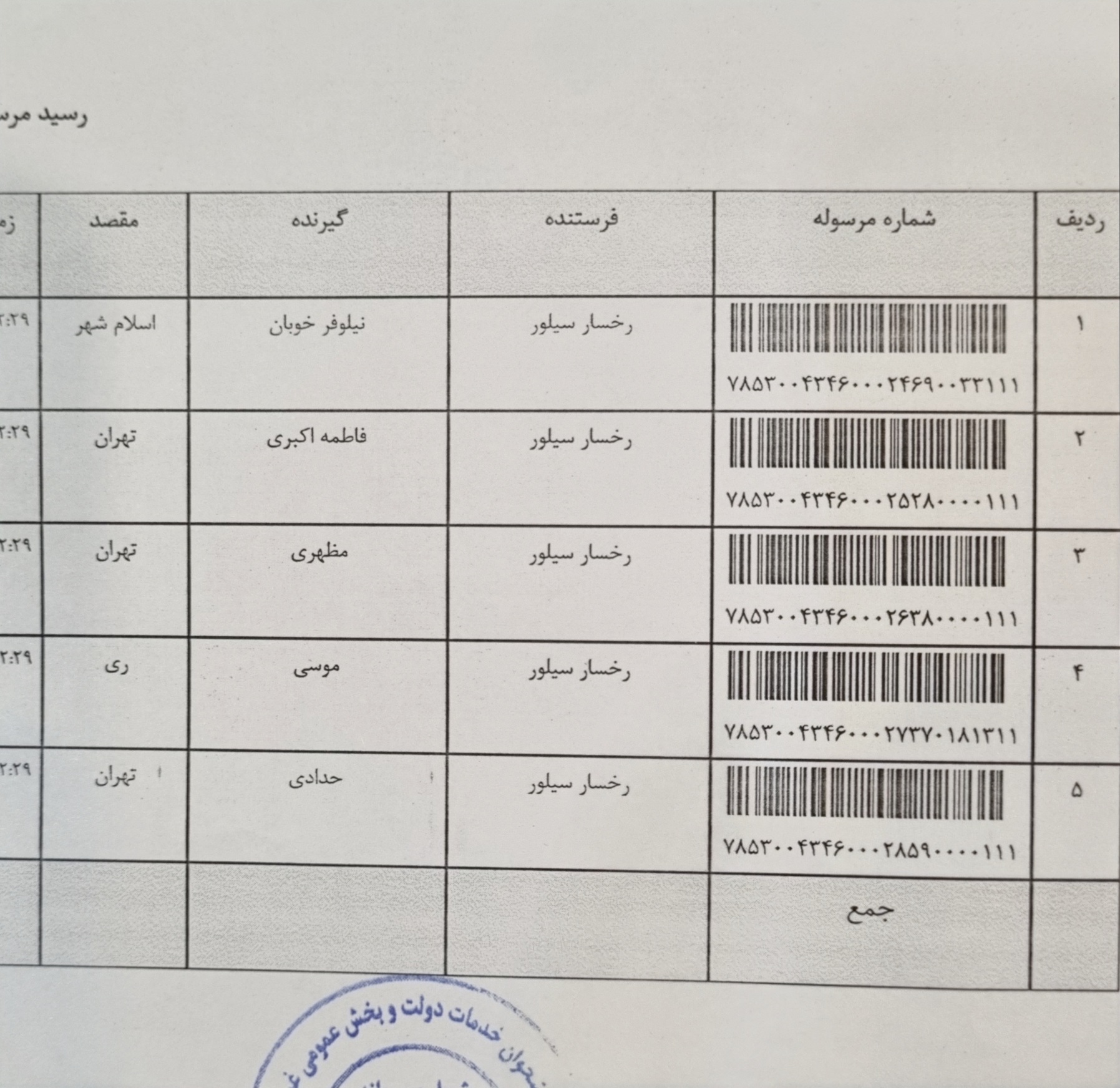 براى مشاهده آخرين وضعيت بسته پستى، كد رهگيرى را در سايت پست وارد كنيد.
