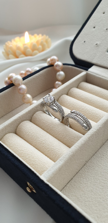 حلقه و‌ پشت حلقه جواهری با آبکاری طلای سفید‌ در رخسار سیلور