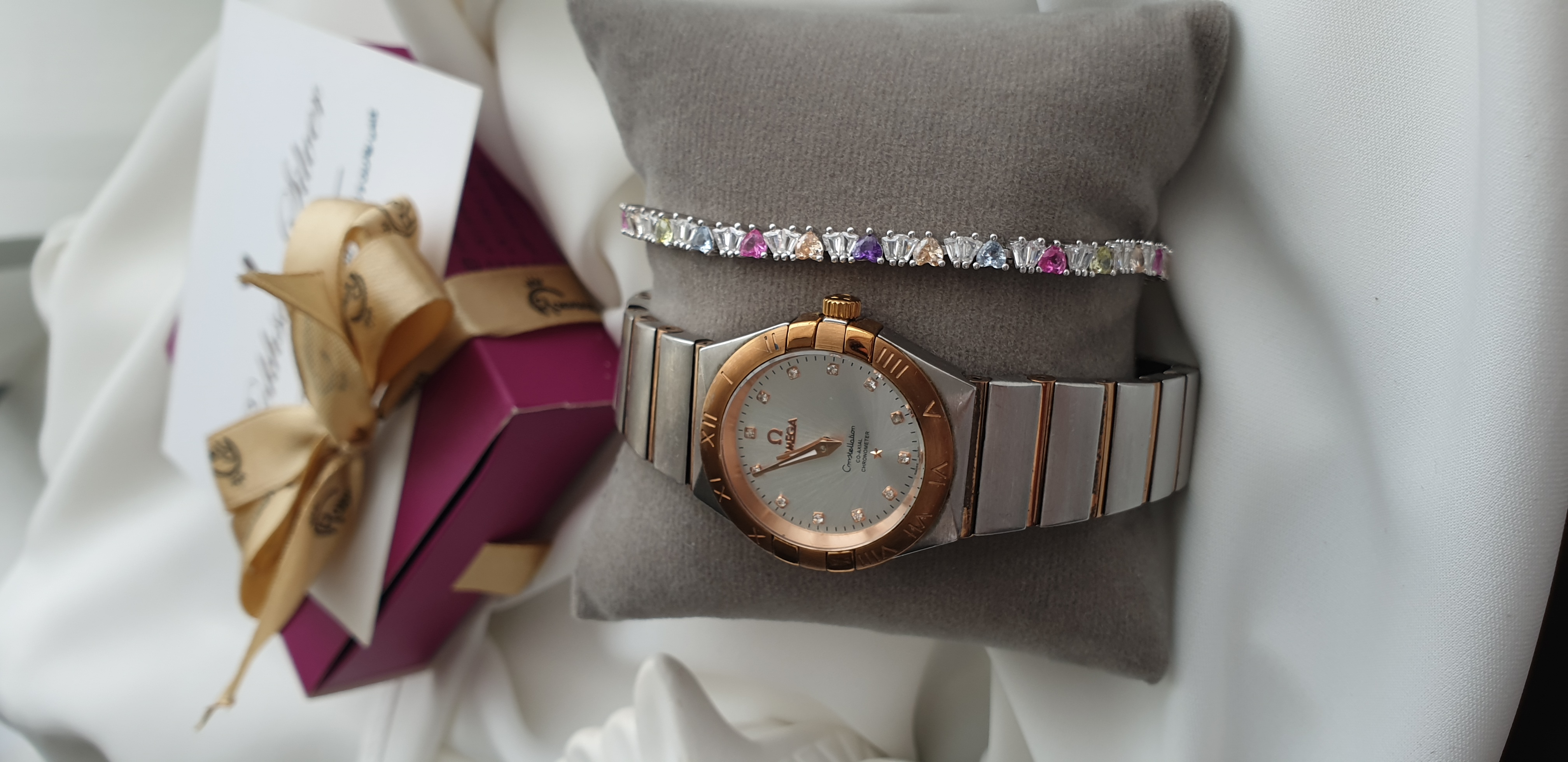 دستبندنقره مولتی کالر با کریستالیهای سوارسکی چند رنگ و مدل جواهری و قفل اصلی طرح طلا و با عیار ۹۲۵ در رخسار سیلور