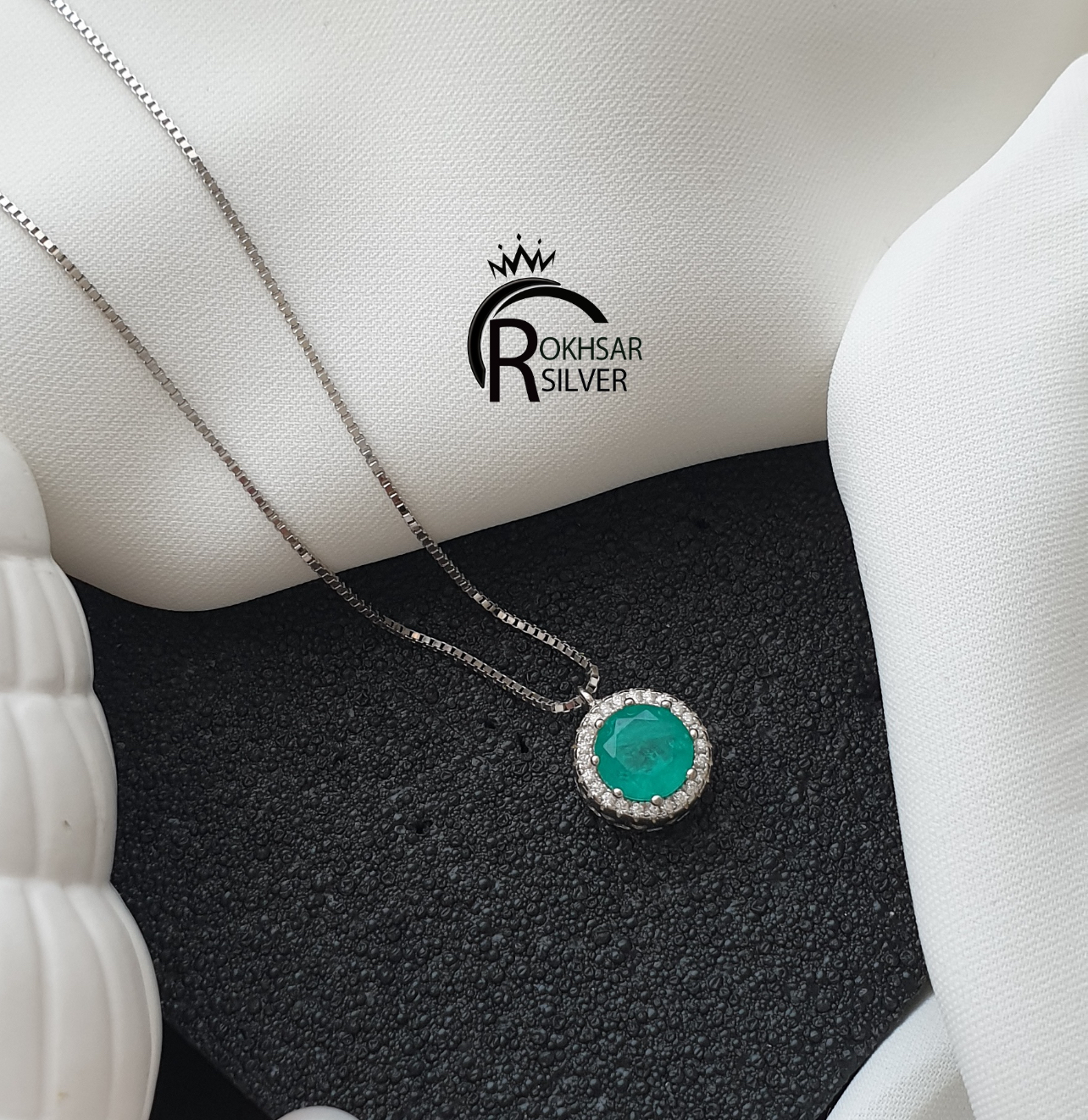 نیمست نقره ایتالیایی زمردمدل گردظریف و‌مینیمال به همراه انگشتر زمرد نقره با عیار ۹۲۵ و فاکتور رسمی و ضمانت