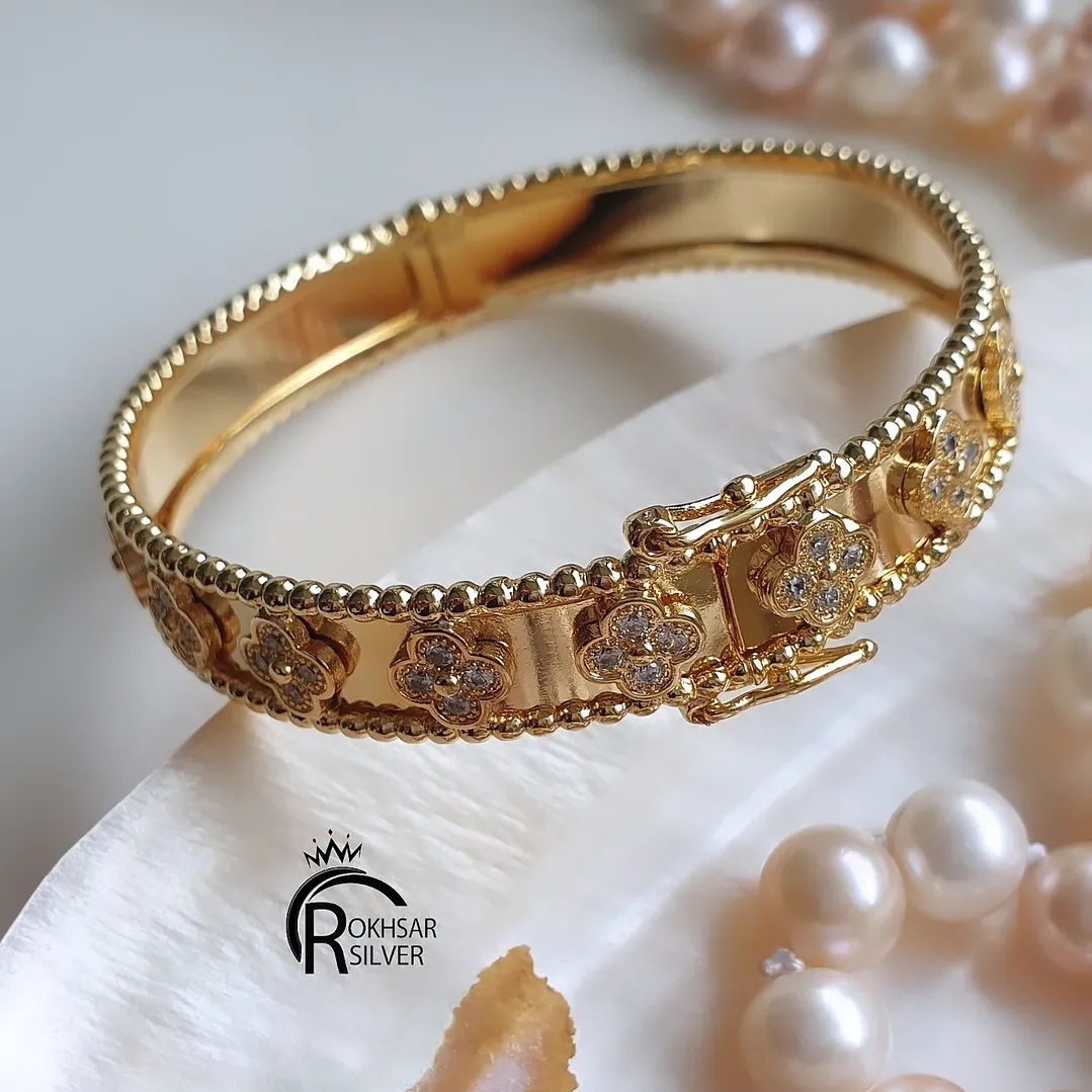 دستبند النگویی زنانه مستر مدل ونکلیف مشابه نمونه طلا در رخسار سیلور