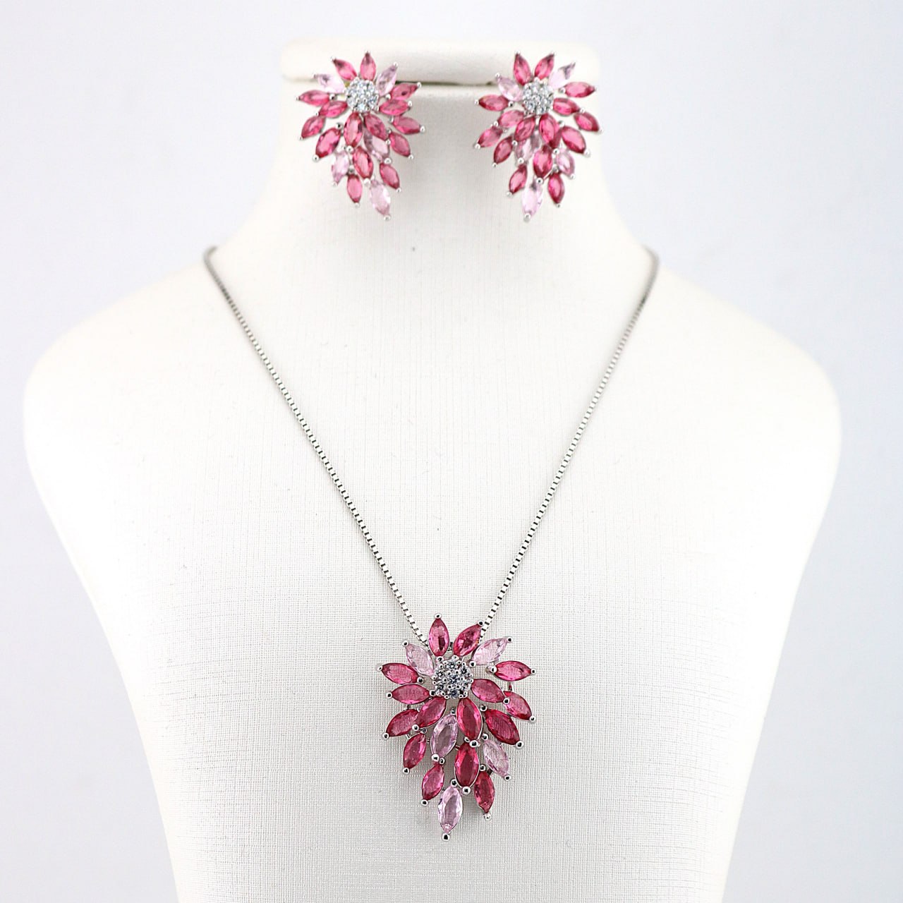 این گردنبند و یا زنجیر پلاک نقره زنانه و گوشواره آویز نقره با مدل جواهری با سنگ های درخشان؛