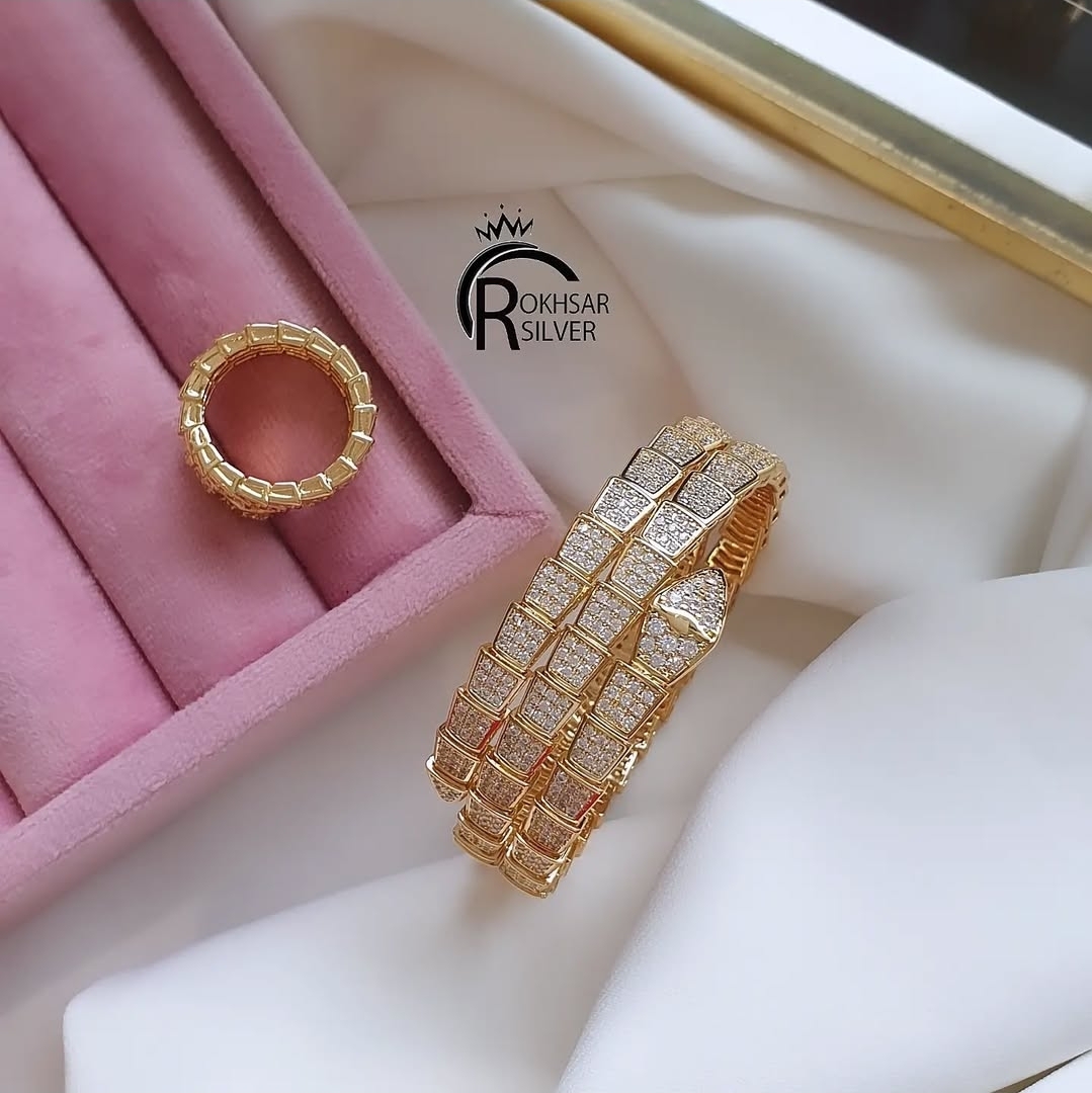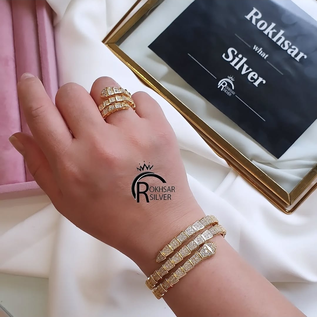 دستبندو انگشتر زنانه ست مار بولگاری کیفیت مستر مشابه طرح طلا در رخسار سیلور