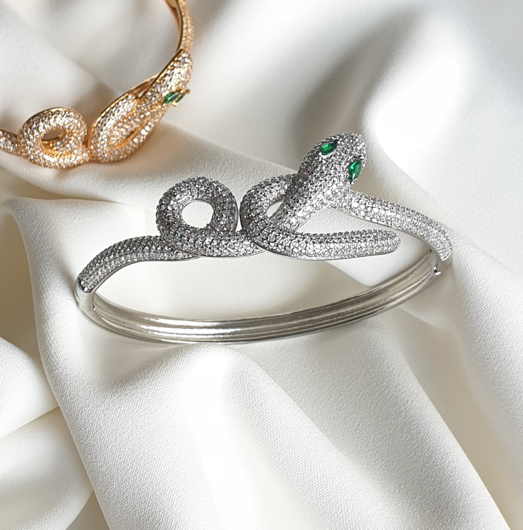 دستبند زنانه جواهری مدل مار فول نگین در رخسار سیلور