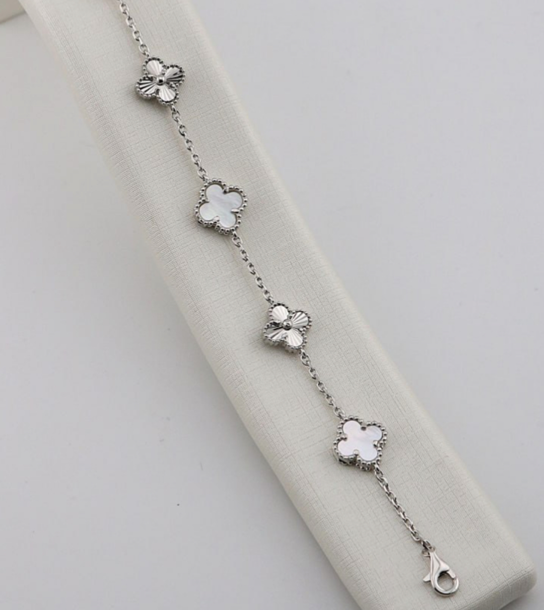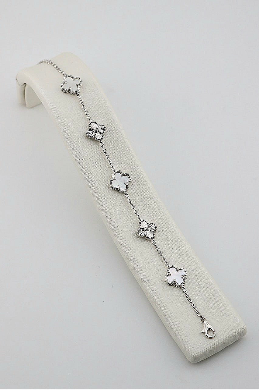 دستبند نقره زنانه ونکلیف ترکیب صدف طبیعی و تراش لیزری با عیار ۹۲۵ در رخسار سیلور