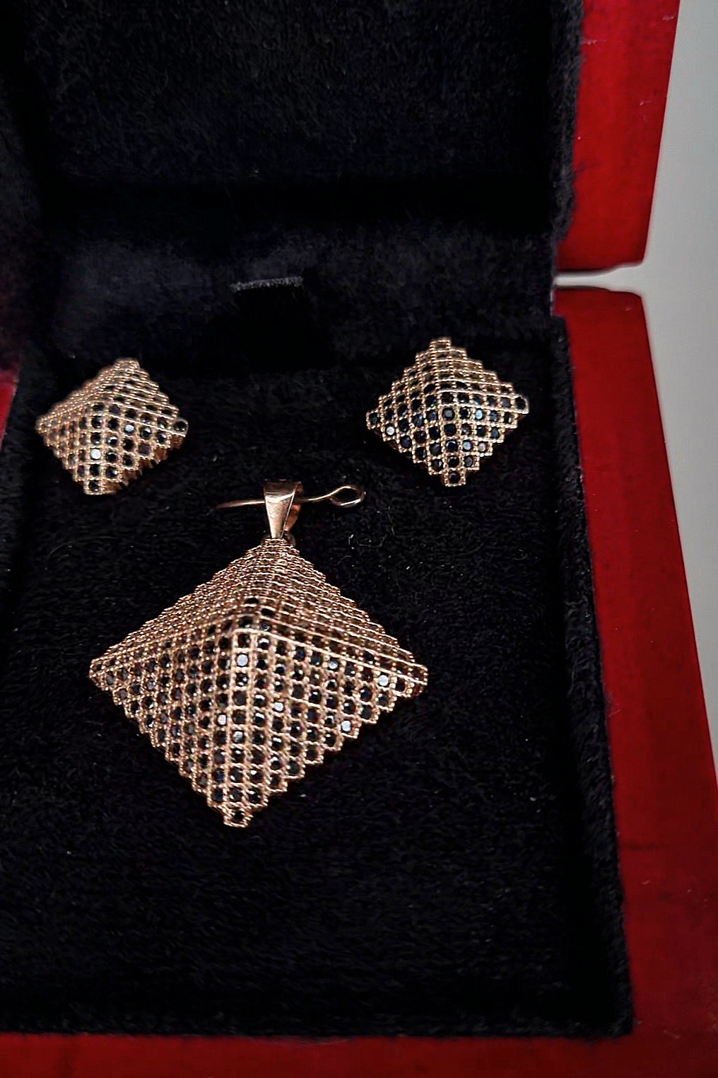 این نیم ست نقره رزگلد پرنس با نگین مشکی همچنین میتواند هدیهای ماندگار و ارزشمند برای عزیزانتان باشد، گزینهای شیک برای تولد، سالگرد یا مناسبتهای ویژه.