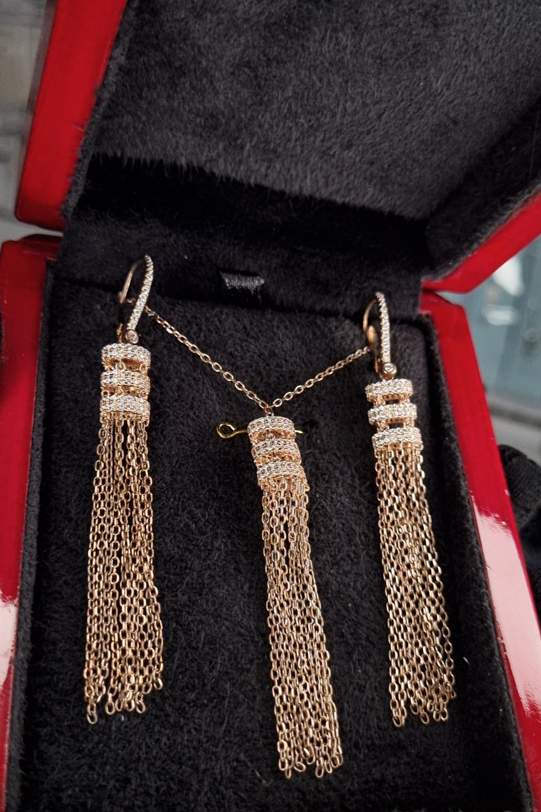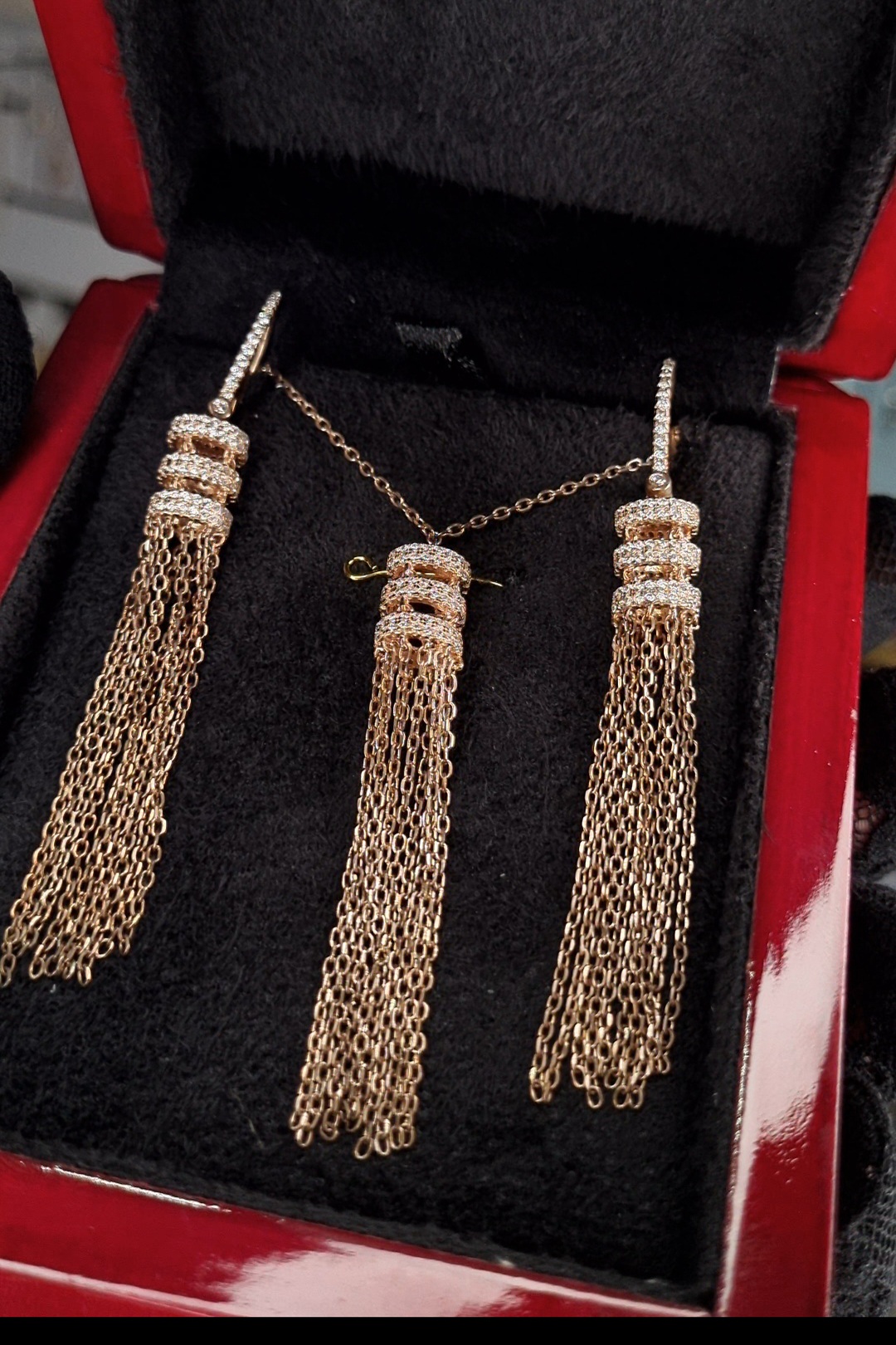 زنجیر 45 سانت 🔴 بلندی گوشواره و پلاک هر کدام 5/5 سانت است