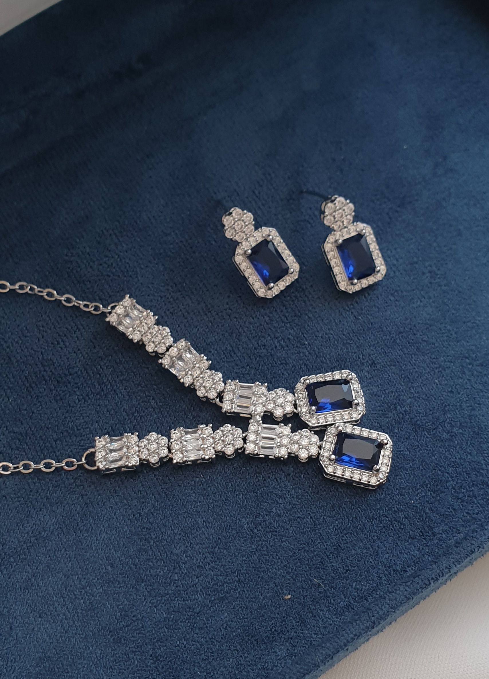 این نیمست زیبا که با سنگهای اتمی و باگت سفید و نگین مربعی آبی سرمه ای ساخته شده ،که بسیار درخشان و با کیفیتند. زنجیر کار آبکاری رادیوم دارد که بسیار براق ومشابه طلاست