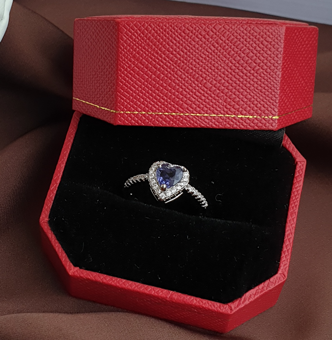 انگشتر دخترانه عشق مدل قلب با نگین بنفش و فری سایز از برند رخسار سیلور