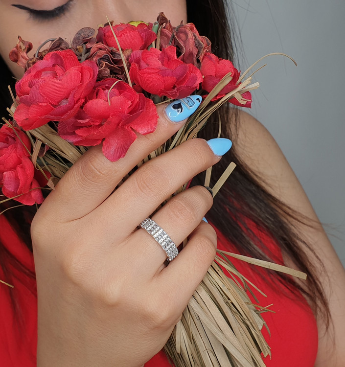 حلقه نقره دور تا دور نگین با طراحی ظریف و درخشش یکدست، انتخابی لوکس برای بانوانی است که به دنبال خرید حلقه نقره زنانه خاص و متفاوت هستند. این مدل از نقره اصل 925 ساخته شده و نگینهای کار شده در تمام محیط حلقه، جلوهای خیرهکننده و مجلسی ایجاد میکند. اگر بررسی قیمت حلقه نقره در کنار کیفیت ساخت و ماندگاری برای شما اهمیت دارد، این انگشتر نقره نگیندار گزینهای ایدهآل محسوب میشود. آبکاری حرفهای، ثبات رنگ و طراحی ترند باعث شده این حلقه رینگی ظریف در دسته پرفروشترین زیورآلات نقره قرار بگیرد و برای هدیه، نامزدی یا استفاده روزمره انتخابی ارزشمند باشد.
