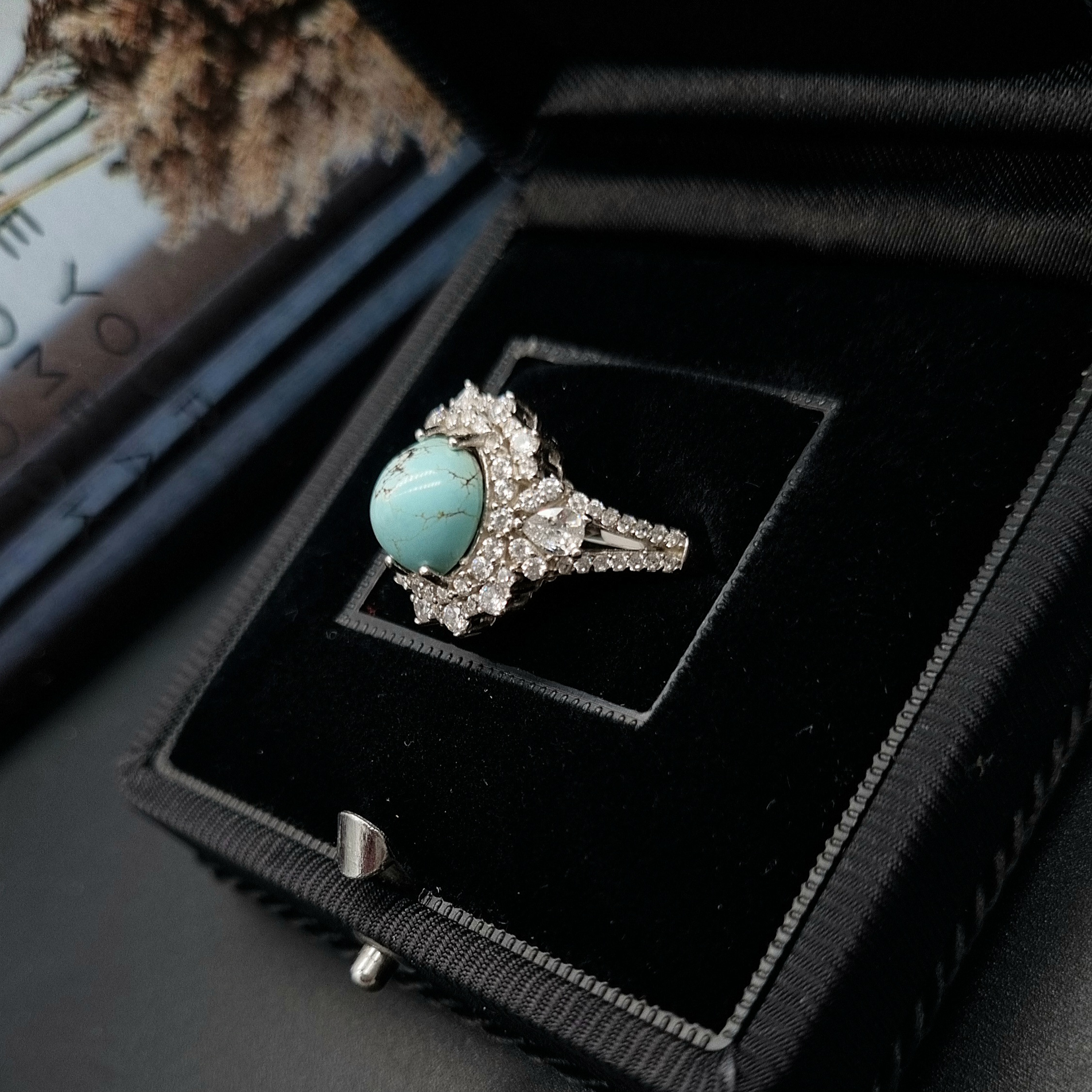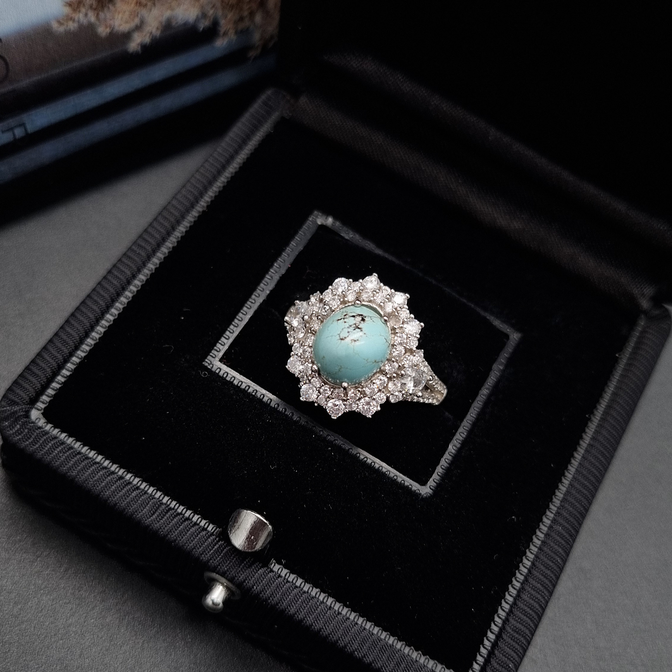 انگشتر زنانه نقره با سنگ فیروزه طبیعی نیشابور و عیار 925 در رخسار سیلور