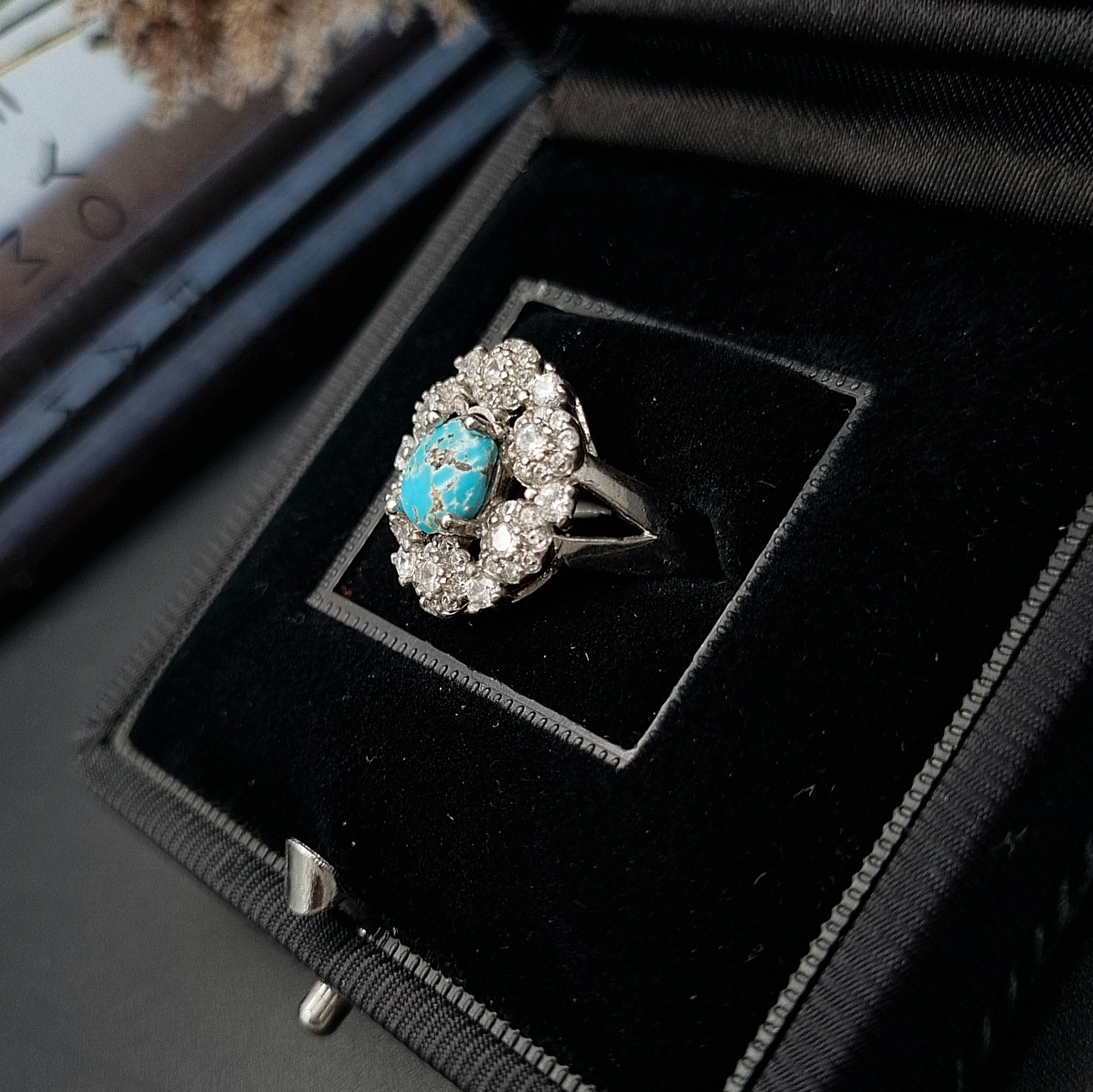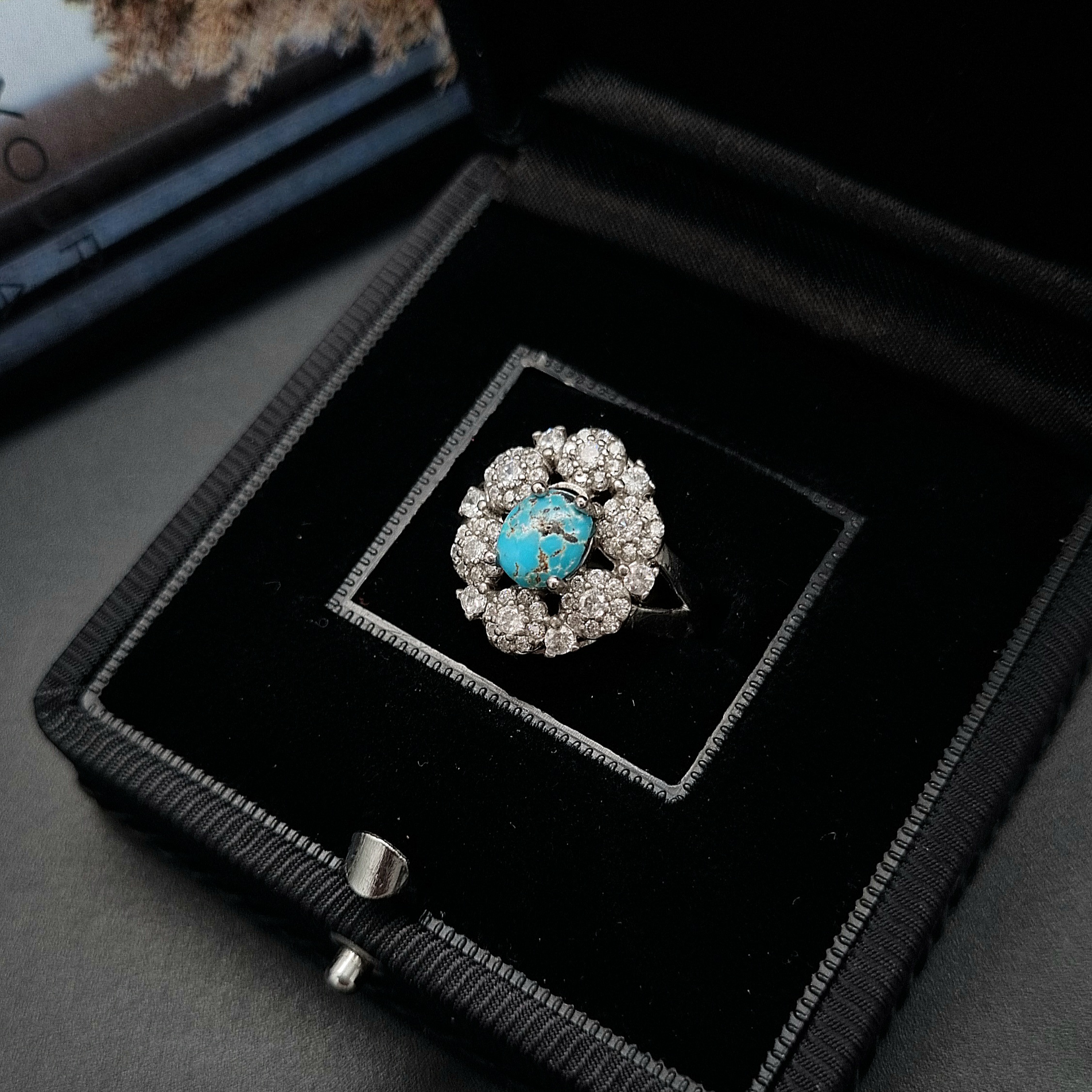انگشتر زنانه نقره با سنگ فیروزه اصل نیشابور و عیار 925 در رخسار سیلور