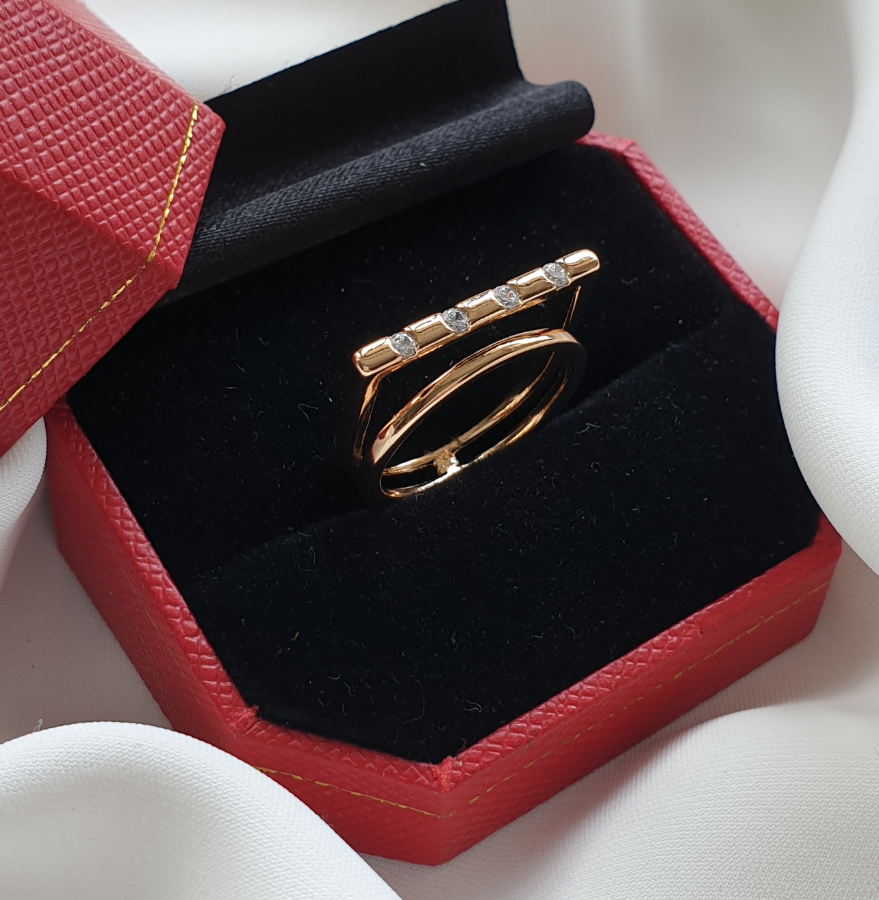انگشتر مینیمال زنانه مدل حلقه و پشت حلقه و کم نگین و مینیمال با آبکاری طلای ۱۸در گالری رخسار سیلور