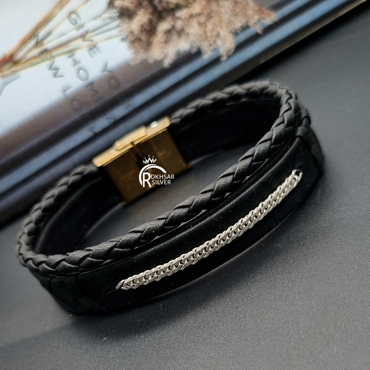 نقره عیار 925 با فاکتور رسمی وضمات تقدیم تون میشود و قسمت چرم طبیعی با قفل استیل است