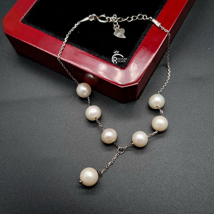 17 سانت با 3 سانت زنجیر رگلاژ و قسمت آویز 2/5 سانت است و اندازه هر مروارید 5 میل است