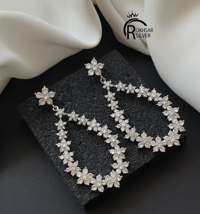 گوشواره زنانه جواهری مدل اشک پُرگل و نگیندار به بلندی۶سانت از برند رخسار سیلور