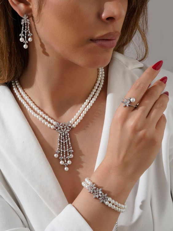 🤎 سرویس مروارید جواهری طرح طلا