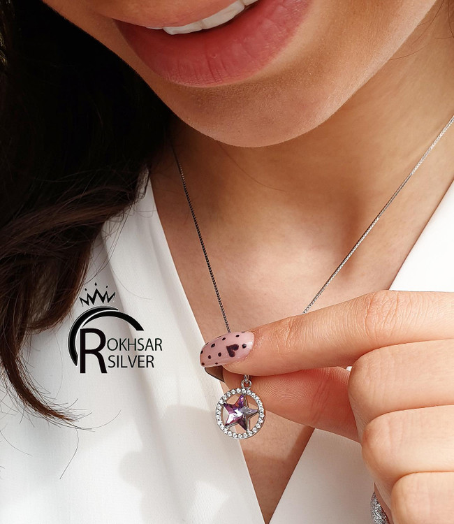 زنجیر پلاک نقره با نگین هفت رنگ سوارسکی با عیار 925 با فاکتور رسمی جهت ضمانت و اورجینال بودن