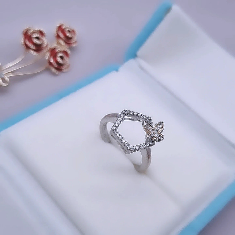 انگشتر نقره زنانه مدل 6 ضلعی عیار 925 و طرح طلا در رخسار سیلور