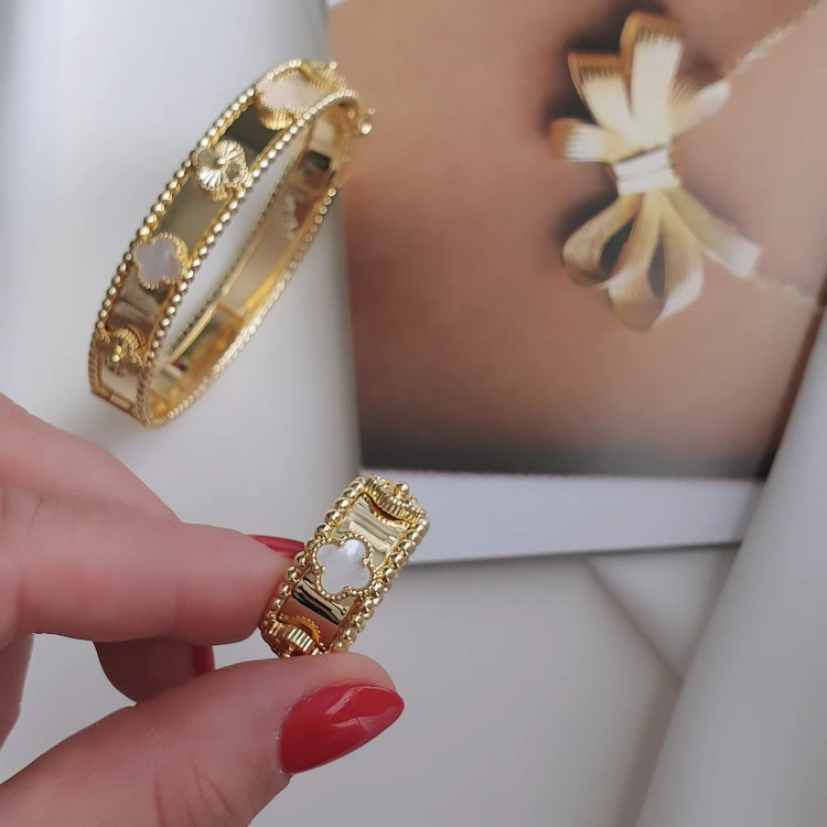 ست زنانه دستبند و انگشتر ونکلیف مستر با صدف طبیعی و طراحی شده از نمونه طلا در رخسار سیلور